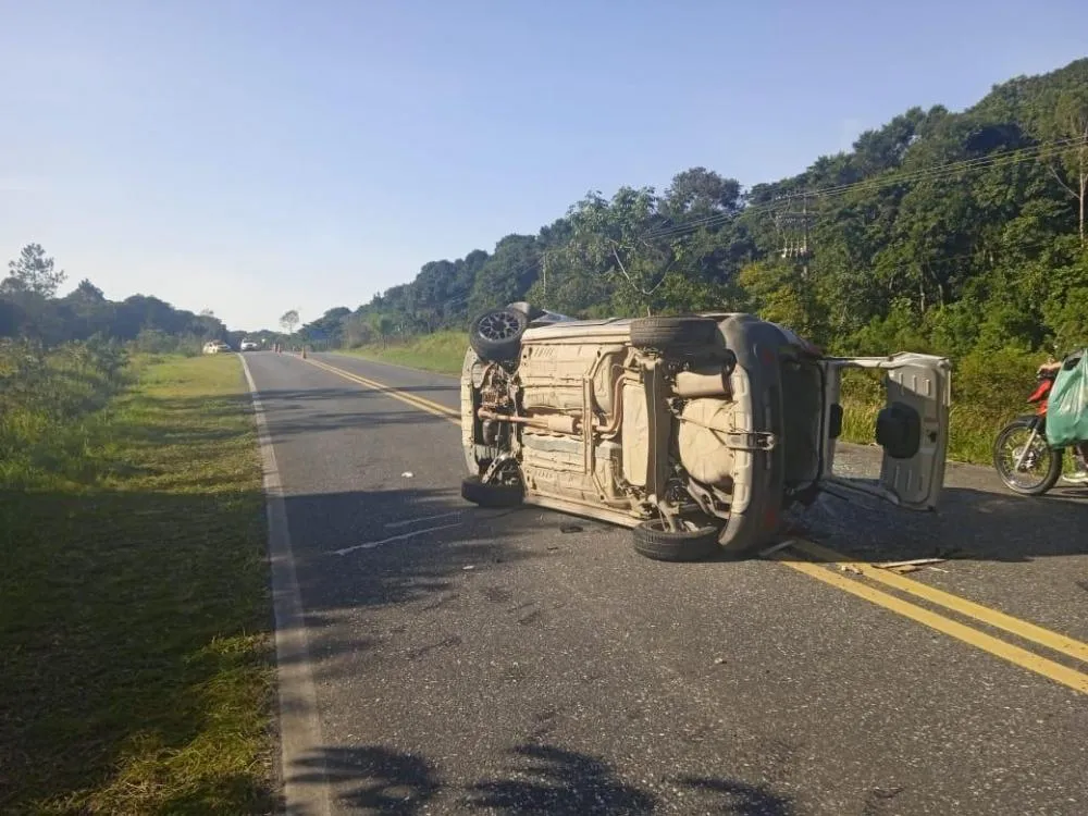 Houve interdição da pista, para remoção do veículo acidentado em Iguape na região do Vale do Ribeira(SP).
