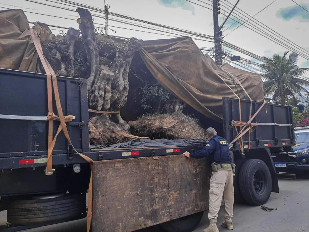 Sete exemplares de Oliveiras Argentinas, avaliados em até R$ 100 mil cada, foram encontrados em carreta fiscalizada em Miracatu/SP.