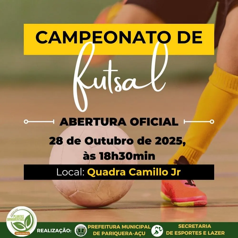 A Prefeitura de Pariquera-Açu, por meio da Secretaria Municipal de Esportes e Lazer, confirmou o início do Campeonato Municipal de Futsal 2025 – Categoria Livre para o dia 28 de outubro.