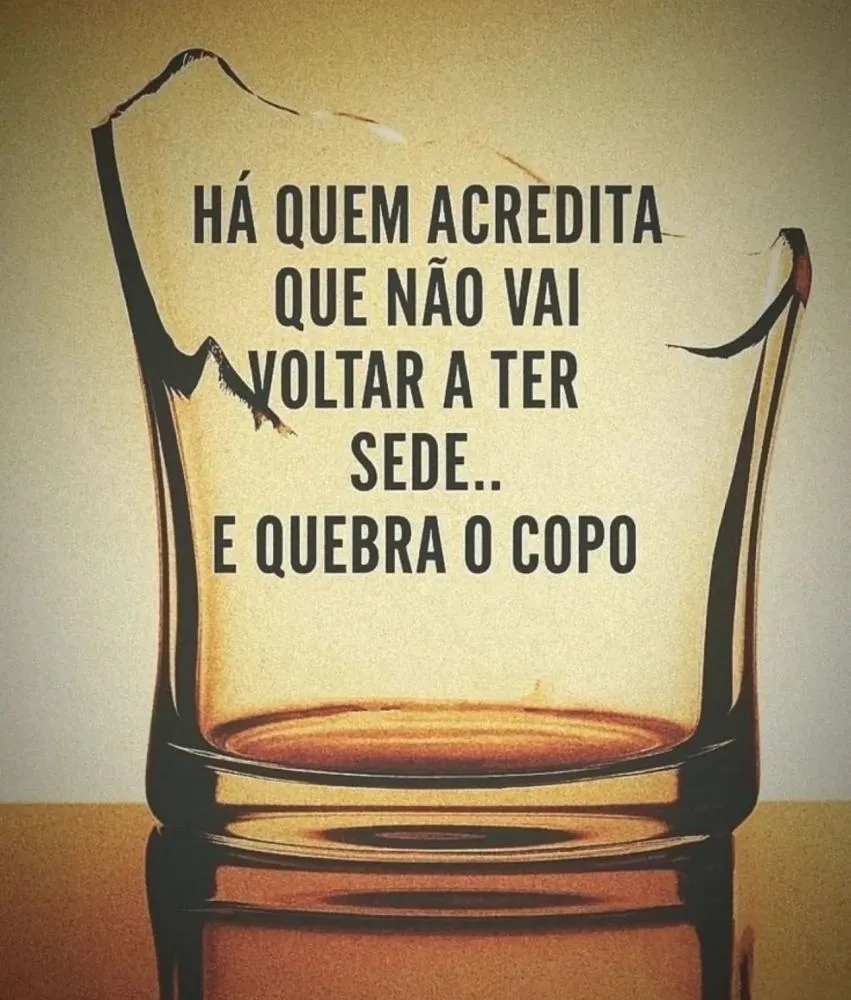 ✅Quebrar o copo: É o ato de destruir, desvalorizar ou abandonar algo que nos é útil ou valioso.