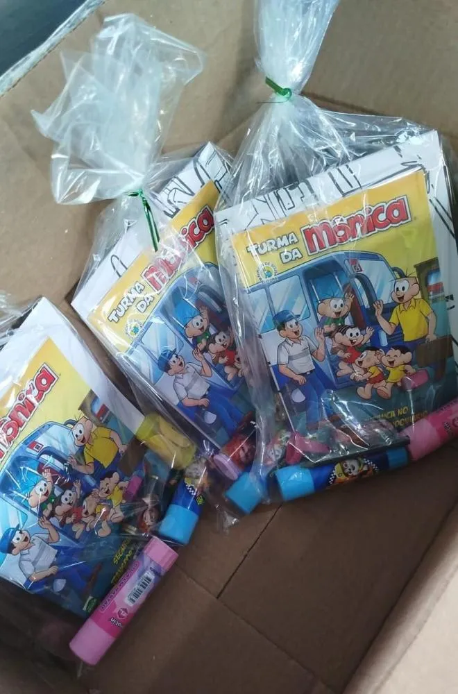 Durante a iniciativa, equipes distribuíram kits e gibis a crianças que passavam pela Rodovia Abílio Previdi, fortalecendo a integração com a comunidade local.