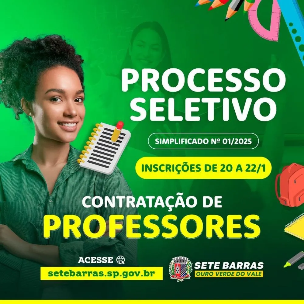 Prefeitura de Sete Barras abre inscrição para Processo Seletivo de Professores a partir do dia 20/1