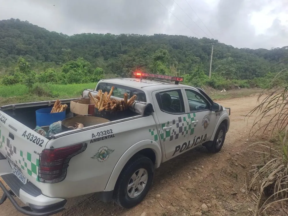 Polícia Ambiental Apreende Palmito Juçara, Carne de Caça e Armas em Sete Barras-SP.