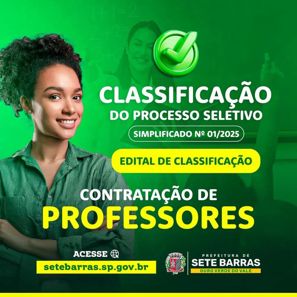 Prefeitura de Sete Barras divulga classificação do Processo Seletivo para Professores