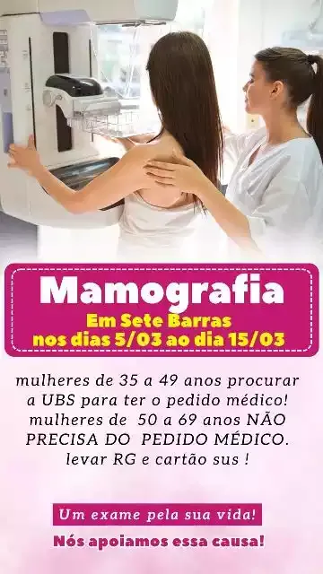 Carrreta da Mamografia em Sete Barras nos dias 5-03 ao dia 15-03