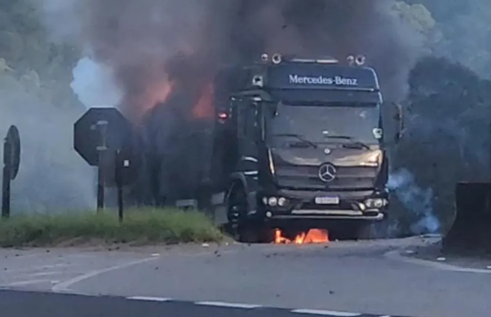 Incêndio com carga de baterias causou lentidão no sentido São Paulo, em Campina Grande do Sul (PR).
